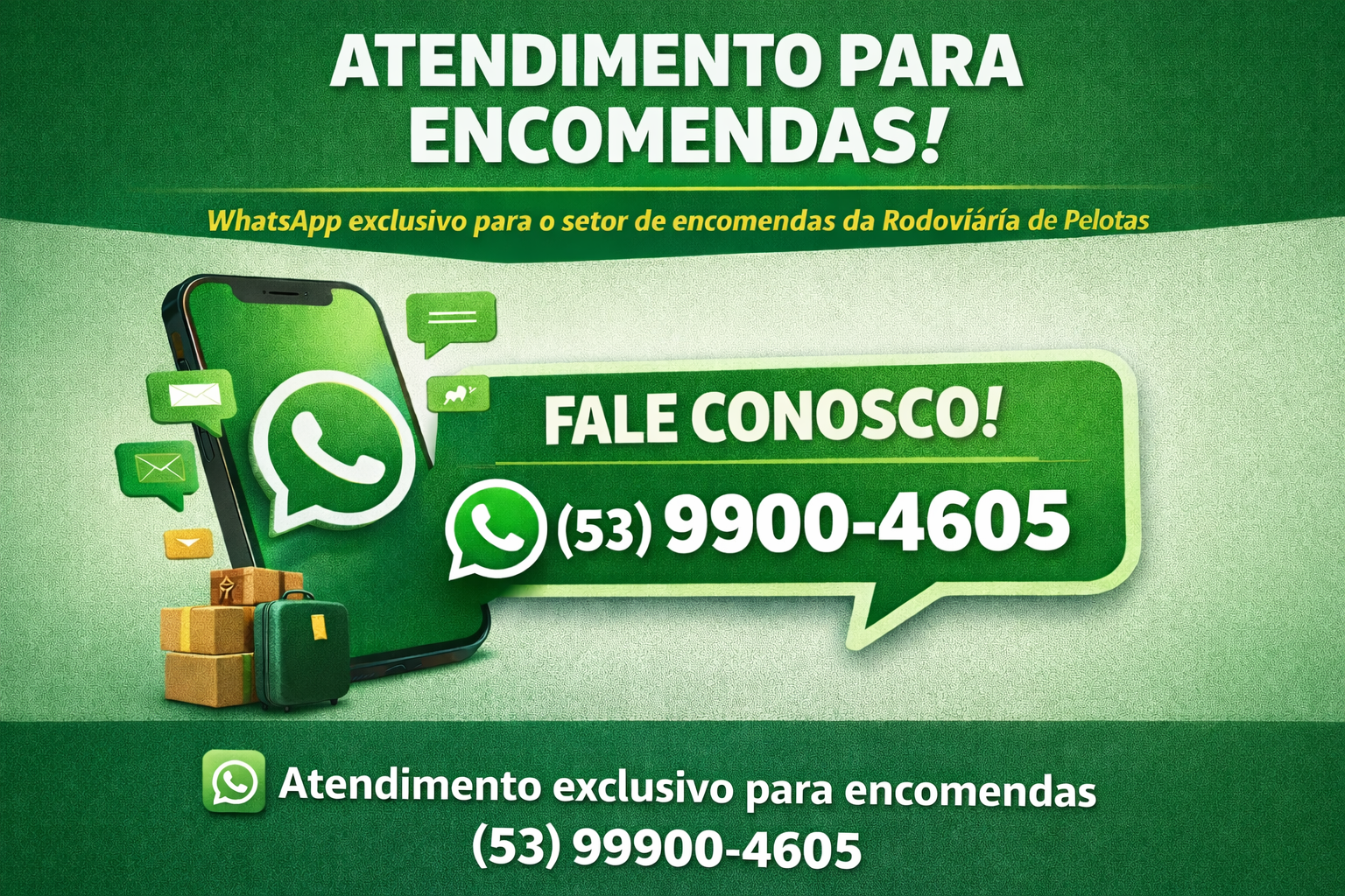 A Estação Rodoviária de Pelotas (ETERPEL) disponibiliza um novo canal de atendimento exclusivo para o setor de encomendas, por meio...